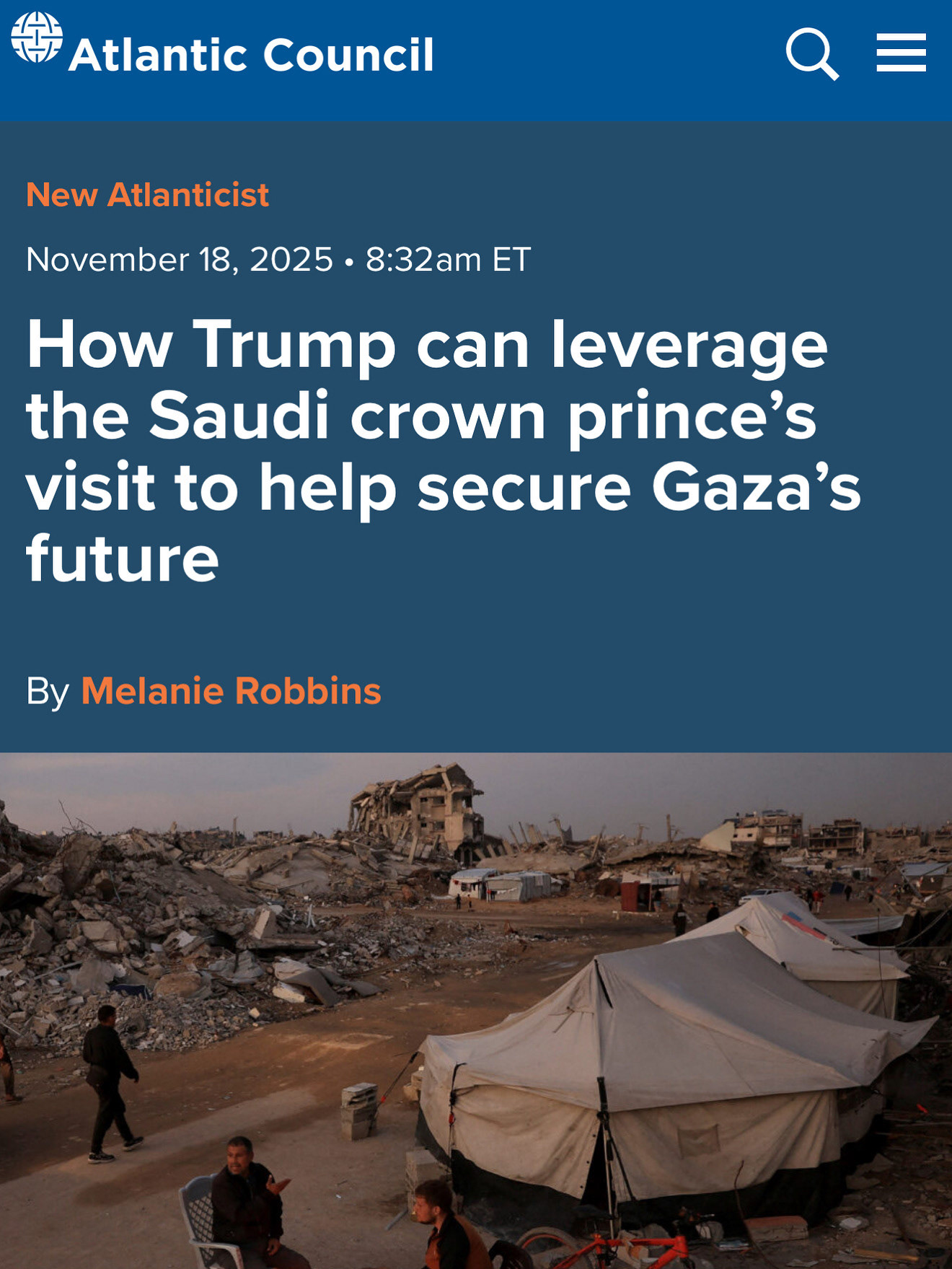 How Trump can leverage the Saudi crown prince’s visit to help secure Gaza’s future - Atlantic Council, New Atlanticists (now known as Dispatches)
