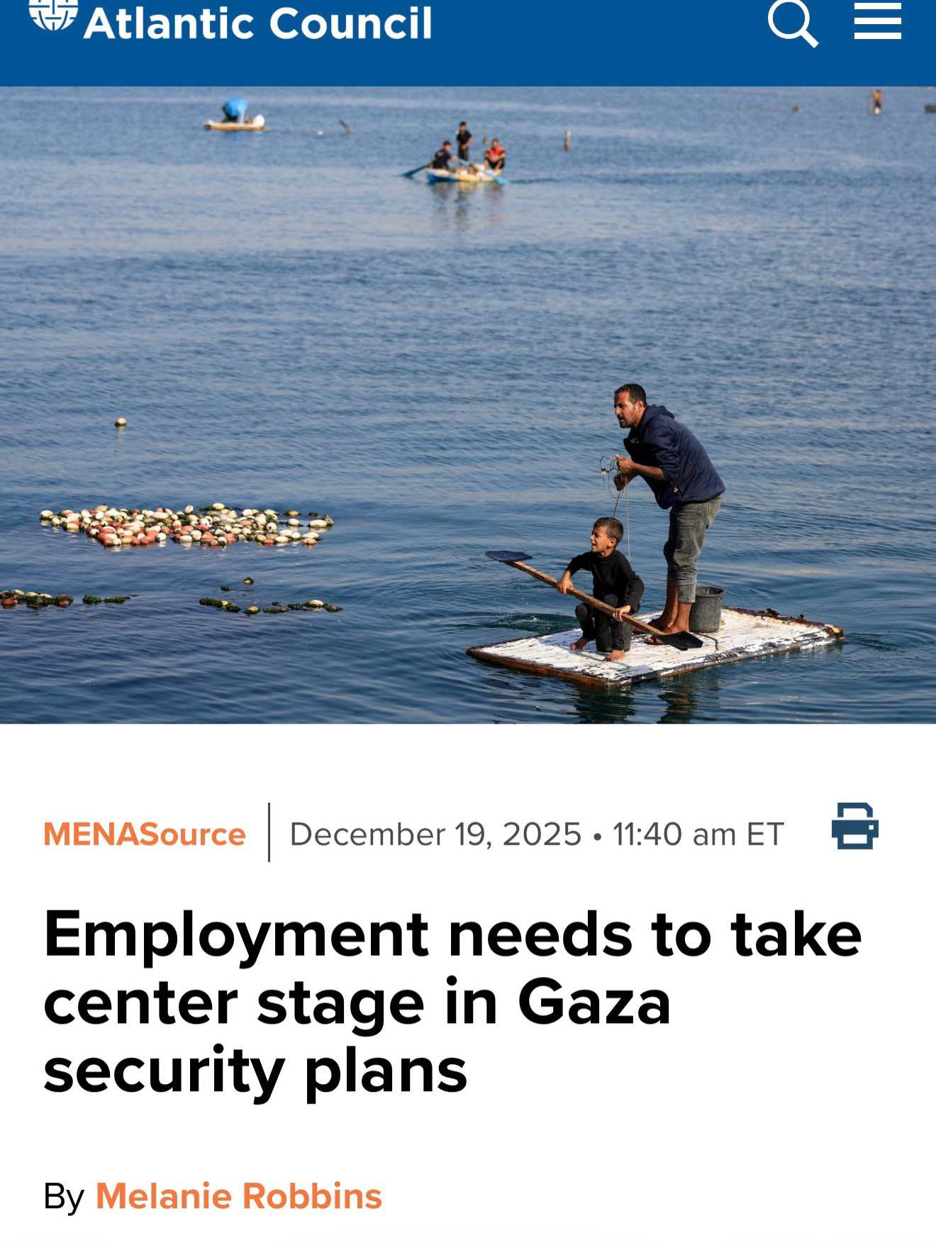 Employment needs to take center stage in Gaza security plans, Atlantic Council, MENA Source.